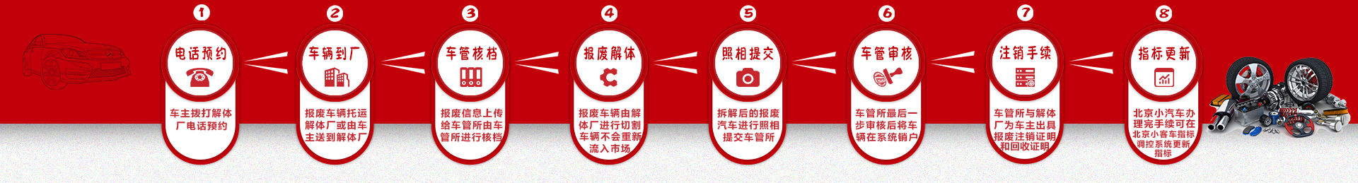 宝鸡汽车报废厂在厂区建设方面严格按照环保要求,业务分工分类,设有报废汽车登记大厅,院内报废汽车停放区,报废汽车拆解区,零件整合仓库区。宝鸡汽车报废厂真诚地恭候广大企业和个人前来咨询洽谈,我们愿为您耐心热情的服务,承诺让您无后顾之忧。我们承诺宝鸡市区免费上门拖车!